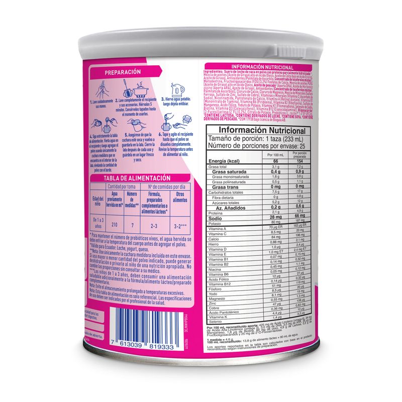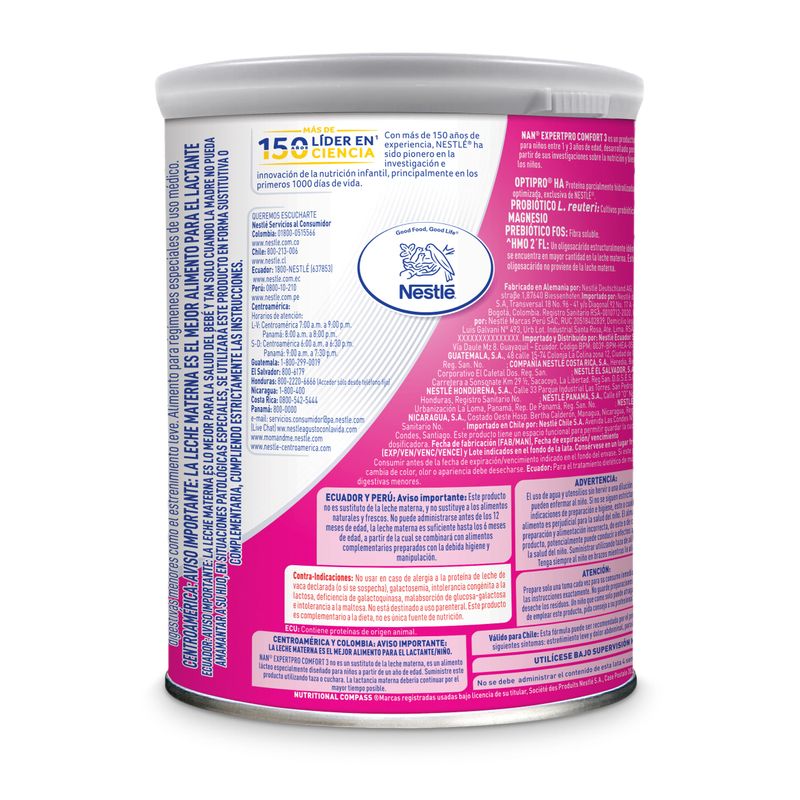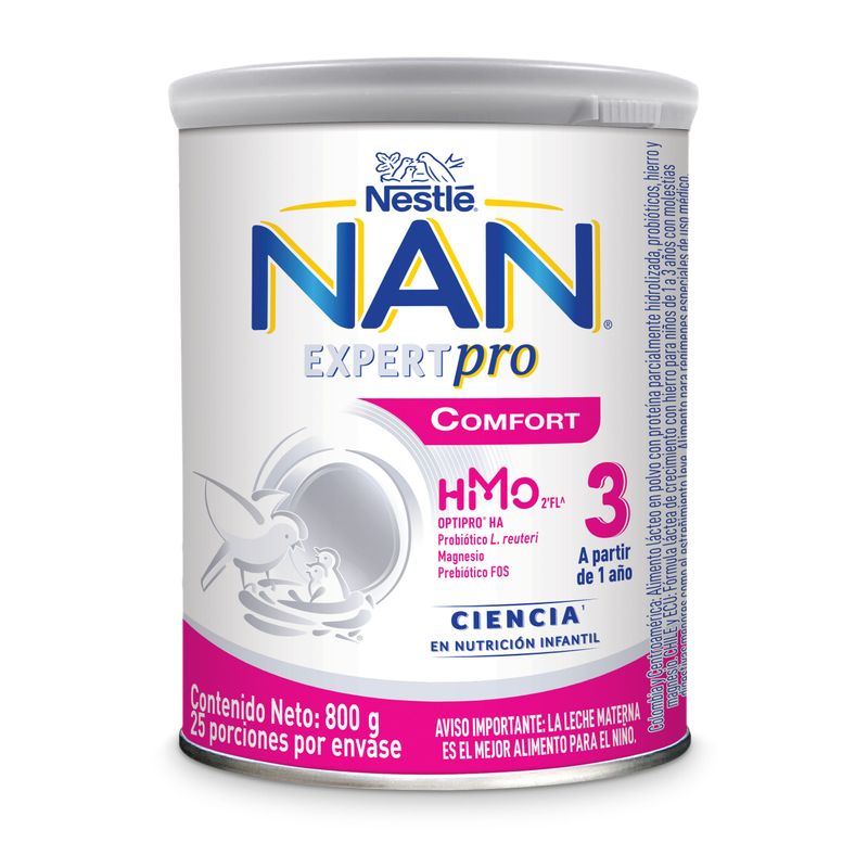 El Alimento Lácteo NAN Comfort 3 se presenta en una lata de 800 gramos. Es una fórmula infantil diseñada para bebés a partir de los 12 meses de edad. Este alimento lácteo proporciona una nutrición completa y equilibrada para el crecimiento y desarrollo saludable del bebé. Está especialmente formulado para bebés con problemas digestivos leves, como el estreñimiento ocasional. Contiene ingredientes cuidadosamente seleccionados, incluyendo proteínas de alta calidad, vitaminas, minerales y ácidos grasos esenciales. El Alimento Lácteo NAN Comfort 3 es fácil de digerir y contribuye al bienestar y confort del bebé. Recuerda que el uso de fórmulas infantiles debe ser consultado con un médico o profesional de la salud.