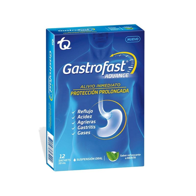Gastrofast Advance Menta X 12 Sachets | Sodio Alginato + Sodio Bicarbonato + Magaldrato + Simeticona. Es un poderoso antiácido para tratar casos de indigestión, reflujo gástrico, acidez y dolor