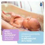 "El jabón JOHNSON'S para Antes de Dormir tiene esencia relajante Natural Calm, y limpia suavemente sin agredir la delicada piel del bebé. Usado dentro de la rutina de 3 pasos JOHNSON'S para Antes de Dormir, clínicamente comprobada, ayuda al bebé a dormir más rápido y por más tiempo*. Su fórmula es hipoalergénica, libre de parabenos y ftalatos. Uso recomendado en niños desde los 6 meses de edad en adelante. *Resultados obtenidos con base en la rutina de baño y después del baño del bebé."