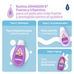 Shampoo JOHNSON'S® Fuerza Vitamina realza la fuerza natural propia del pelo en desarrollo, con triple protección contra el quiebre. Posee glicerina, germen de trigo y vitamina E, presente en las frutas. Fórmula hipoalergénica, con pH fisiológico y libre de colorantes, parabenos, sulfatos e ftalatos. Para cabellos aún más fuertes y protegidos contra el quiebre, complemente con los productos restantes de la línea: acondicionador y spray para peinar.