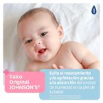 El talco JOHNSON'S Original es ideal para proteger la delicada piel del bebé, evitando el resecamiento y la agrietación, gracias a la absorción de exceso de humedad.